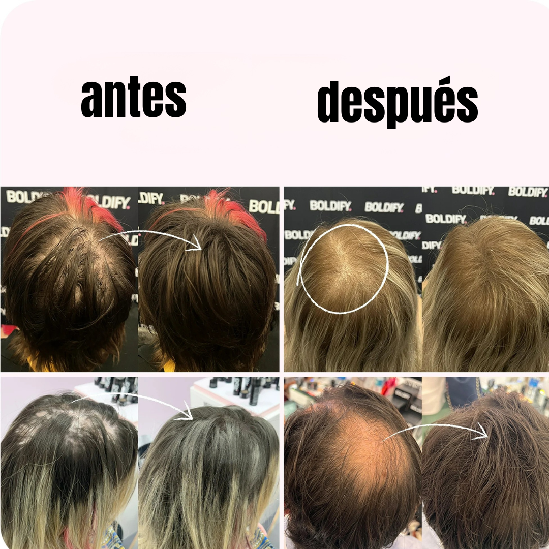 Observa la transformación: zonas con menos cabello ahora lucen más densas y naturales. Fácil de aplicar, duradero y resistente a la humedad, para un look impecable todo el día